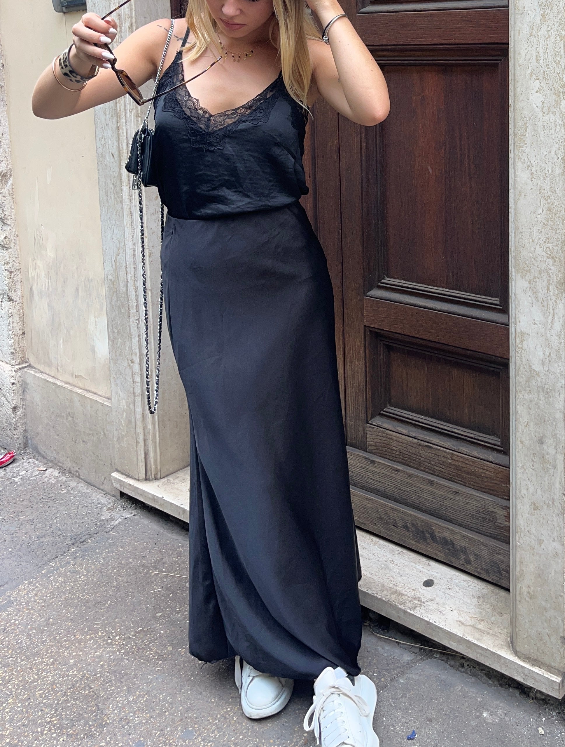 CARACTÉRISTIQUES : Jupe longue Satin Uni